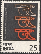 Year: 1975 Date: 8th April 1975 Theme: Bicentenary of Army Ordnance Corps Perforation: 13 x 13 1/2 Watermark: None |