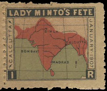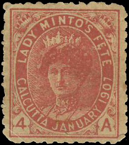 A special postmark was also designed to be affixed to the stamps that were supposed to sold during the fete and depicts a red cross marked around with "Minto Fete Calcutta" with the time and date of the stamp.