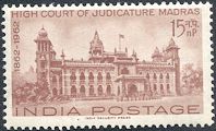 Date (s) of Issue: 1st July (358), 8th August (359), 14th August (360) Occasion : Cent. of Indian High Courts Watermark: Ashokan Perforation: 13 1/2 x 14 |