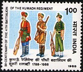 Year: 1988 Date: 19th February 1988 Theme/Occasion: Bicentenary of 4th Battalion of the Kumaon Regiment Perforation: 14 Watermark: None |