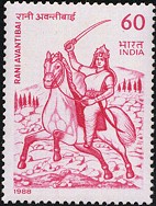 Year: 1988 Date: 20th March 1988 Theme/Occasion: Rani Avantibai of Ramgarh Comm. Perforation: 13 1/2 x 13 Watermark: None |