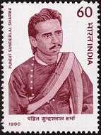 Year: 1990 Date: 28th September 1990 Occasion: Pandit Sunderlal Sharma Comm. Perforation: 13 x 13 1/2 Watermark: None |