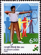 Year: 1990 Date: 29th September 1990 Occasion: XI Asian Games, Beijing, China Perforation: 13 x 13 1/2 Watermark: None |